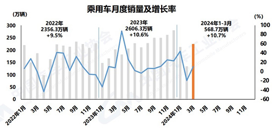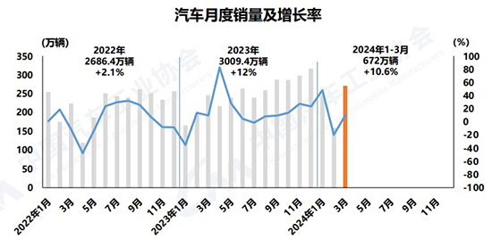 昨日(4月10日),中汽協(xié)發(fā)布數(shù)據(jù)顯示,3月,我國(guó)汽車產(chǎn)銷分別完成268.7萬輛和269.4萬輛,環(huán)比增長(zhǎng)78.4%和70.2%,同比增長(zhǎng)4%和9.9%;1-3月,產(chǎn)銷分別完成660.6萬輛和672萬輛,同比分別增長(zhǎng)6.4%和10.6%,實(shí)現(xiàn)一季度開門紅。