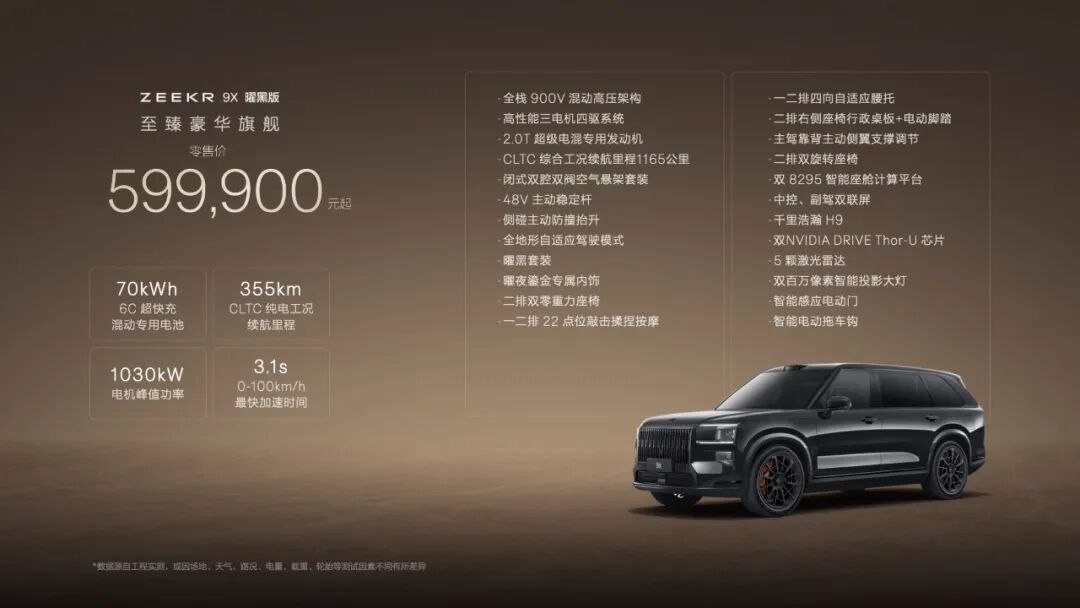 9月29日,極氪9X正式公布了四款車型價格,限時售價45.59萬元至58.99萬元。這款極氪旗艦大型SUV基于浩瀚-S電混架構(gòu)打造,首發(fā)搭載浩瀚超級電混、浩瀚AI數(shù)字底盤、浩瀚安全盔甲與千里浩瀚輔助駕駛四大核心科技,在三電、底盤、安全與智能化等領(lǐng)域?qū)崿F(xiàn)了真正的代際領(lǐng)先。